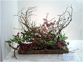 作者:江原政甫さん花材:朝鮮槇・木瓜