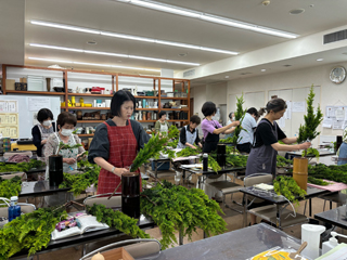 雨にも関わらず多くの会員が花材と花器を持参して研究に励んでいます。