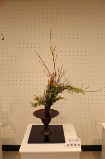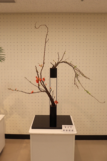 副会長小島彩香 伊吹、錦木 川口の青木会館で開催されたいけばな展です。2管活けで堂々とした作品になりました。