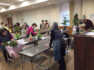 桂会研究会(午後) テーマを付けて作品をいけるのは、大変好評で午後も大変にぎやかでした