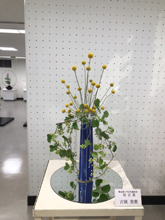 松澤華厚 花材指定の部門に出品しました。数ヶ月前から努力しました。部門の中では出色の作品です。工夫の跡が随所随所に見られます。