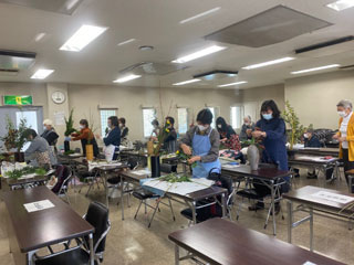 実習は複数の花器を使って思い思いの作品をたのしみました。