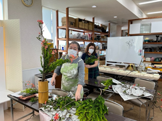 皆さん思い思いの花材で活けています。詳しくはYouTubeで後ほどアップします。