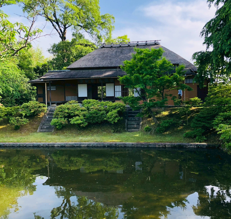 初代智仁親王は和歌や連歌に堪能な学問文芸に秀でた親王で、2 代智忠親王とともに家領の桂に造営した別荘・桂別業こと桂離宮は日本最高の庭園として知られています。また、ふだん桂宮家の方々が居住し、日常的に花を飾っていた本邸は京都御所北側かつ近衛邸東側、現在の京都御苑最北端に位置し、庭園が公開されています。本邸は現在の二条城本丸御殿に移築されています。桂古流の花はこうした風雅な宮中の環境で育まれて発達してゆきました。 -