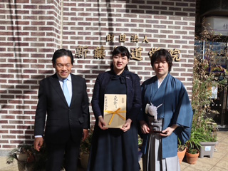 副家元、新藤潤鳳と共に会館前にて若夫婦と共に師範記念の写真が撮れました。